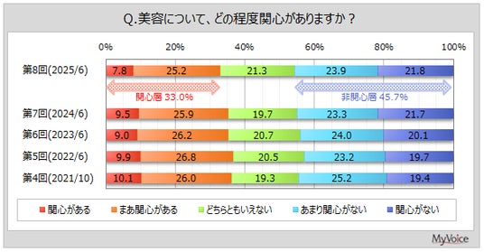 マイボイスコム株式会社(東京都千代田区、代表取締役社長:高井和久)は、8回目となる『美容意識と行動』に関するインターネット調査を2025年6月1日~7日に実施しました。