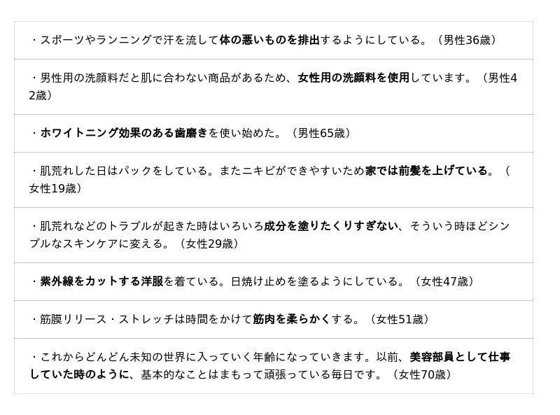 美容への関心、美容のために意識していることや利用しているアイテムなどについて聞いています。調査結果をお知らせいたします。