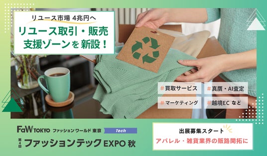 RX Japan株式会社(本社:東京都中央区、代表取締役社長:田中岳志)は、2025年10月に開催する「第4回 ファッションテックEXPO 秋」内にて、**「リユース取引・販売支援ゾーン」**を新設し、現在出展社を募集しております。
