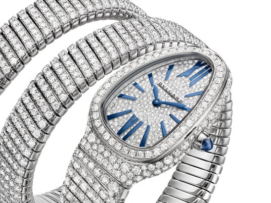 シングルまたはダブルツイストブレスレットを備えたハイジュエリーウォッチ「セルペンティ インフィニティ」の新作3モデルは、ダイアル全体にパヴェが施され、ピンクゴールド、イエローゴールド、ホワイトゴールドで彩られたセルペンティにはダイヤモンドがあしらわれており、さらにホワイトゴールドにダイヤモンドがフルジェムセッティングされたハイエンドウォッチも展開されます。「セルペンティ インフィニティ」は、卓越したクラフツマンシップの結晶であるブルガリの豊かなヘリテージと革新を重ねる創造性の融合によって生まれたプレシャスなブレスレットを備えています。