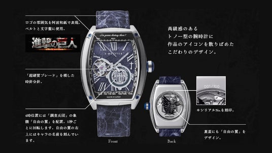 株式会社ウエニ貿易(本社:東京都台東区、代表取締役社長 宮上光喜)はキャラクターコラボ専門ブランド「GARRACK (ギャラック)」から、日本の伝統工芸の一つである「阿波和紙」を使用し、TVアニメ『進撃の巨人』とコラボした機械式腕時計(自動巻き)3モデルを限定各100本で6月20日に予約開始し、6月27日より発売します。