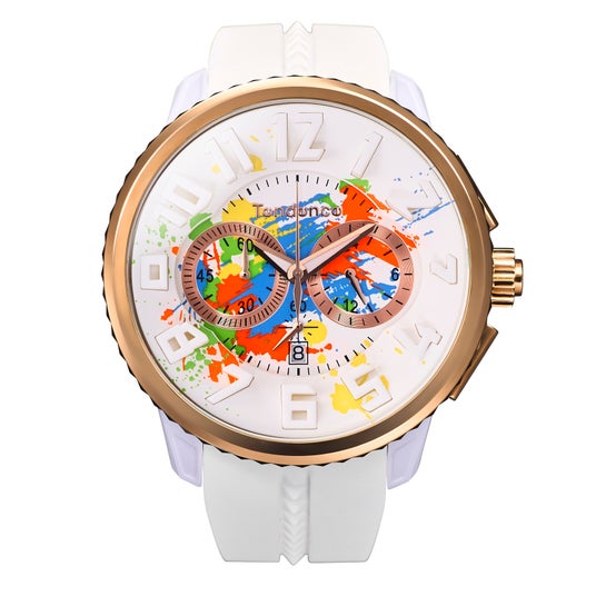 初登場時即完売し、回数を重ね今回第3弾となるSplash。これまでホワイトのモデルは41mmのみの展開でしたが、今回は50mmを採用。Tendenceの最もインパクトあるサイズ感を、ホワイトのカラーリングで楽しむことができるようになりました。