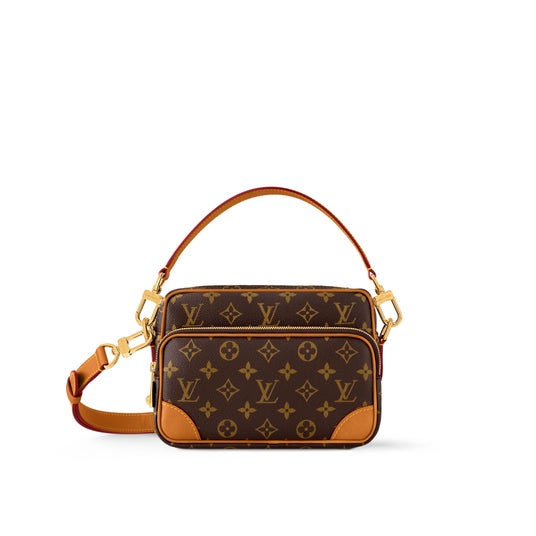 「モノグラム・アーカイヴ」コレクションの一部として登場した、トレンド感のある小ぶりなバッグ「ナイル」。ヴィンテージ風のディテールとモダンなエレガンスを融合したアイテムは、補強されたコーナーやファレル・ウィリアムスが新たに取入れたパール風のファスナー引き手が特徴。取外し可能なハンドルと着脱できるストラップでさまざまな持ち方を楽しめます。