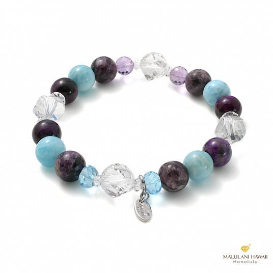 天空を思わせるブルートーンが、思考をすっきり整え、落ち着いた判断とインスピレーションで、豊かさへとつながる選択を導くブレスレット。