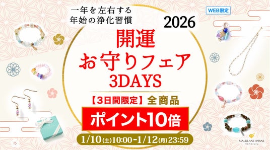 ハワイ発祥の天然石アクセサリーブランド「マルラニハワイ」は、1月10日(土)10:00 ~ 1月12日(月)23:59の期間、公式オンラインショップにて「新年キャンペーン」を開催いたします。