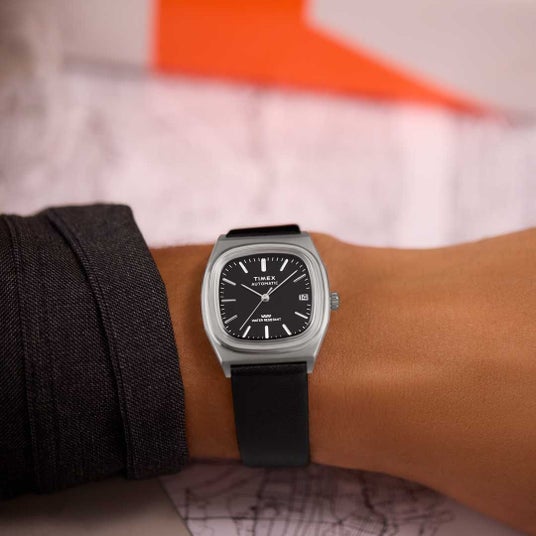 新たにラインナップされた落ち着きのあるネイビーは、知的かつ誠実な印象を与えてくれるためビジネススタイルに最適です。また1983年のタイメックス本国の総合カタログではドレス向けモデルとして紹介。今ではレトロと表現したくなるデザインも当時は先駆的であり、まるで80年代のウォール・ストリートの金融マンが着けていそうな凛々しい顔つきは、ビジネスマンに必要な信頼感を印象づける腕時計として貢献してくれます。