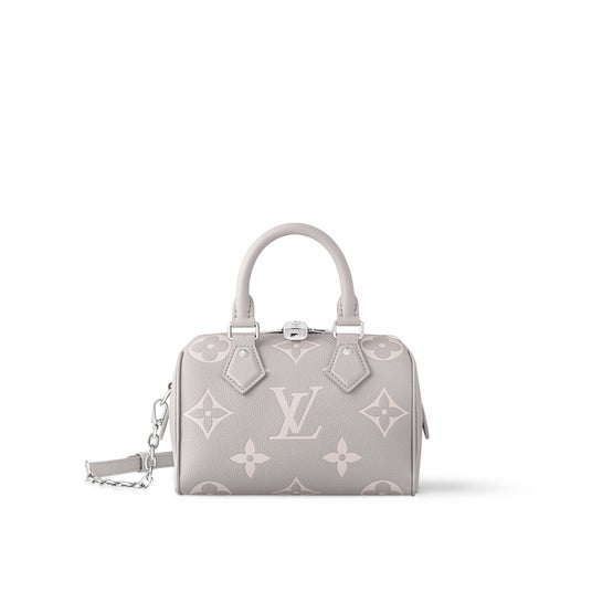 「LV ミルキーウェイ」コレクションから着想を得て、エレガントな色使いでアップデートした「スピーディ・バンドリエール 20」。シグネチャーのパドロック(錠前)をはじめとしたメタルパーツはシルバーカラーで仕上げました。コンパクトなフォルムでありながら、スマートフォンや財布、鍵に加え、お気に入りのリップスティックも収納できる充分なサイズも魅力。