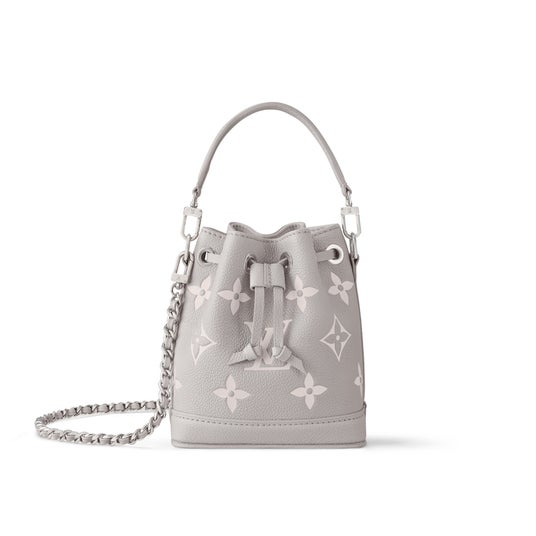 デイタイムからイブニングシーンまで多彩に活躍するバイカラーで、今シーズンならではの雰囲気にアップデートした「ナノ・ノエ」。さまざまな持ち方を楽しめる取外し可能なチェーンなど、シルバーカラーのメタルパーツをあしらいました。スマートフォンやコンパクトウォレット、口紅などの普段の必需品をたっぷり収納できる内装も魅力。