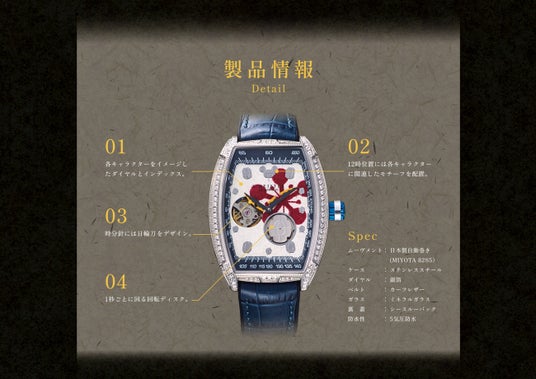 日本の伝統工芸「金沢箔」を使用し、アニメ「鬼滅の刃」のキャラクターを再現。文字盤を熟練の職人が一つ一つ手作業で仕上げた芸術品ともいえる逸品です。