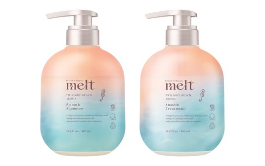 ※『メルト スムースシャンプー トワイライトビーチアロマの香り』『メルト スムーストリートメント トワイライトビーチアロマの香り』各480mlと『メルト クリーミーメルトフォーム』1.0g×2包のセット品です。セット品のみの販売となり、シャンプー・トリートメントそれぞれ単品で購入することはできません