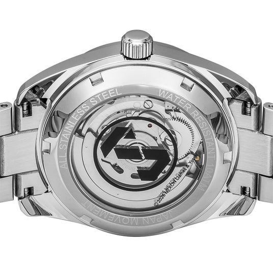 裏蓋にはシッテムの箱のロゴをプリント。内部のムーブメントを眺めることができるシースルーバック仕様となります。