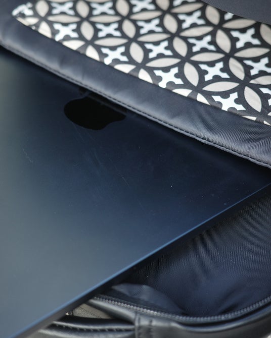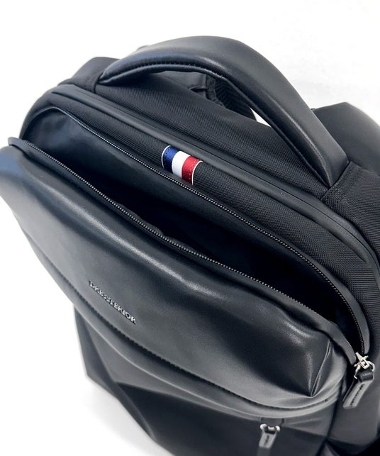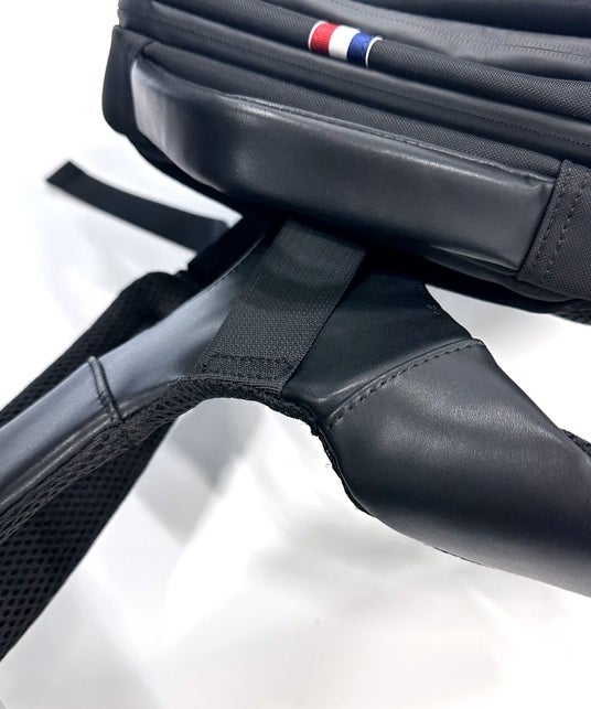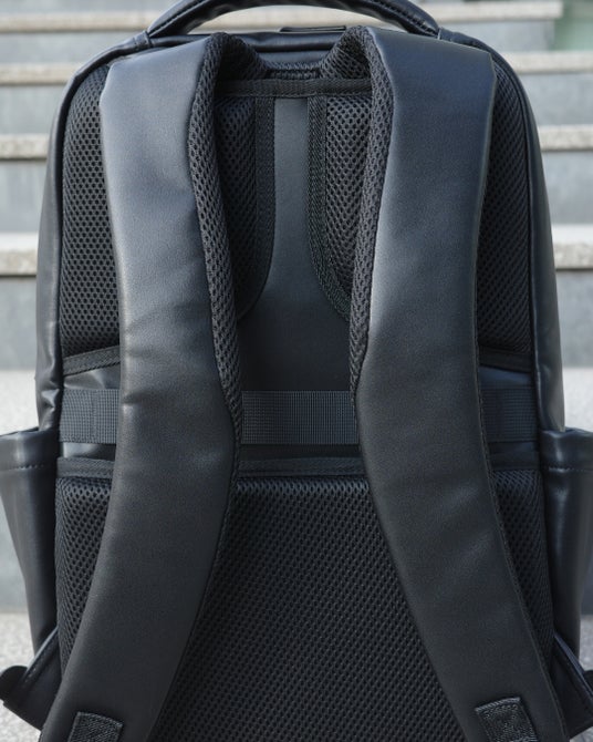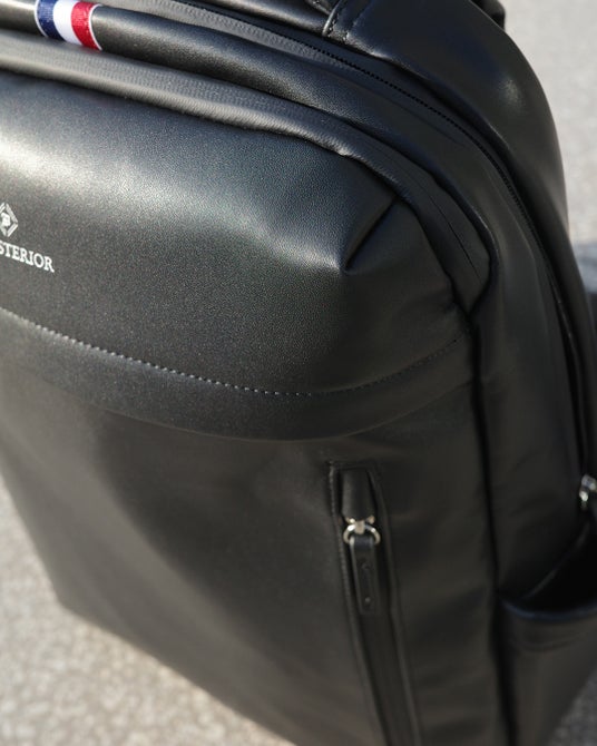 各所に使用されているリサイクルレザーは、雨の日にも強い撥水加工を施しており、見た目も肌触りも非常に滑らかな一品となっています。