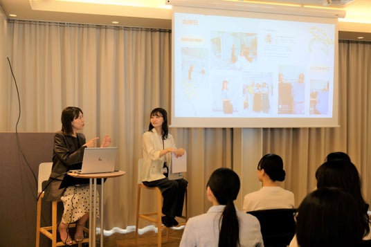 また、「仕事理解セッション」では4つのブースを設置し、「企画(MD)」「生産・商品供給」「EC」「販売」で活躍する先輩社員が、実際の仕事内容や職種の役割について紹介しました。