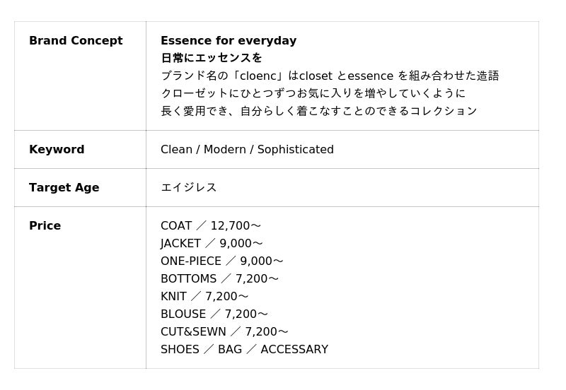 【cloenc:Brand Outline】