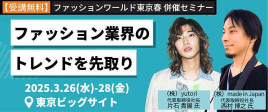 RX Japan株式会社(本社:東京都中央区、社長:田中岳志)は、2025年3月26日(水)から3月28日(金)に東京ビッグサイトにて行われる第12回 FaW TOKYO(ファッションワールド 東京 春)において、ファッション業界の最新動向がわかる、セミナーを全10本開催します。 [事前申込制 / 受講無料]