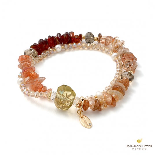 豊かさを呼び込む石を華やかに紡いだ、上品な2連ブレスレット。