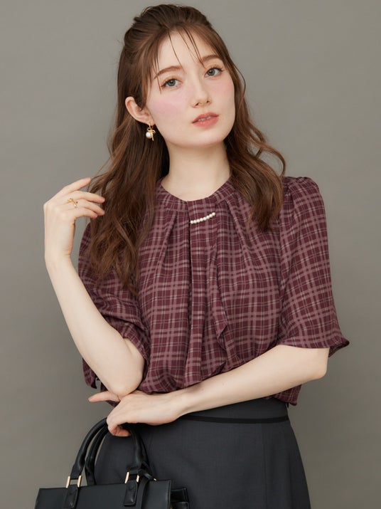 今回の特集ページでは、フェミニンでありながら二の腕をカバーできる「5分袖トップス」をラインナップ。チェック柄が映えるブラウスや、肩にフラワーレースを施した華やかなカットソー、フレア袖が魅力の上品なサマーニットなど、真夏から秋にかけて活躍する着回しやすいアイテムを取り揃えています。