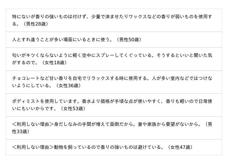 ☆よく利用する香水・フレグランスの種類やこだわり/利用しない理由(全5,135件)