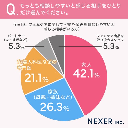 フェムケアに関して不安や悩みを相談しやすい相手が「いる」と回答したのは、およそ2割の方でした。
