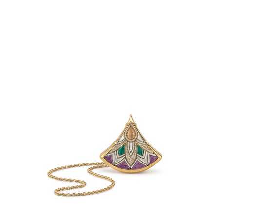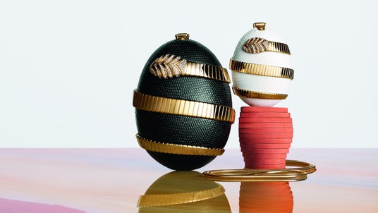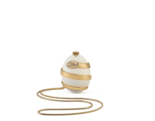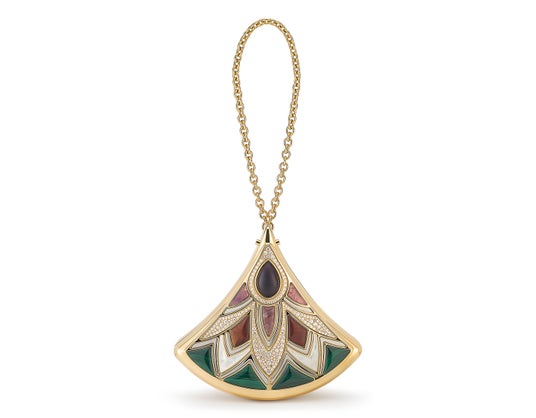 本コレクションでは、ハイジュエリーに由来する特有の製作手法がバッグに応用されました。ロストワックス鋳造法によって彫刻的なフォルムが正確に再現されており、繊細な手作業によるエナメル加工やパヴェセッティングが施されています。さらに、アメシスト、タイガーアイ、マザー・オブ・パールやマラカイトの象眼細工が手作業であしらわれたモデルも展開します。それぞれのクリエーションには繊細なチェーン、そしてクロージャーにはカボションカットの石があしらわれたモデルもあり、機能的なものを崇高な存在へと昇華させています。