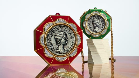 それぞれのブルガリ アイコンズ ミノディエールは、ブルガリの長い伝統から生まれた歴史的なピースと現代における対話を通して制作されています。「モネーテ」は、古代ローマのコインを新たなスケールで再現したミノディエールを冠し、貴重なエナメルで縁取られています。「トゥボガス」は、蛇行する真鍮製のボディが希少なリザードレザーによる卵のフォルムを包み込むことで自然を再解釈しています。「ディーヴァ ドリーム」における精巧な宝石の象眼細工は、カラカラ浴場のモザイクにインスピレーションを得た同コレクションの原点を反映しています。「ブルガリ・ブルガリ」のモダンさは、手作業でデザインを組み込んだマザー・オブ・パールがあしらわれた円筒形のミノディエールに昇華されています。そしてブルガリの象徴である「セルペンティ」のジュエリーやウォッチのヘッドは、独立したクリエーションとして再解釈されています。