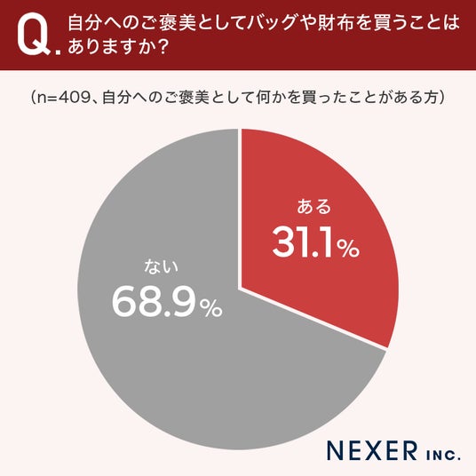 3割以上の方が、自分へのご褒美としてバッグや財布を買うことが「ある」と回答しています。