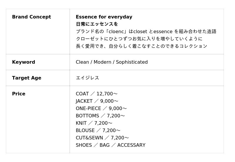 【cloenc:Brand Outline】