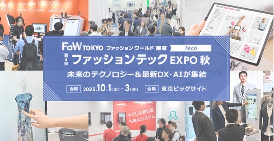 こうした潮流を背景に、10月1日(水)から東京ビッグサイトで開催されるファッションビジネスの展示会【FaW TOKYO 秋】内にて「ファッションテック(ファッション×テクノロジー)EXPO」を開催します。会場には、AIカメラによるアイテムレコメンド機能が付いたミラーや、まるで実物を目の前で見ているようなイマーシブ体験ができるオンラインショッピングサービスなど、ファッション業界の変化を象徴する“未来の買い物体験”ができ、取材が可能です。取材の事前登録はこちら
