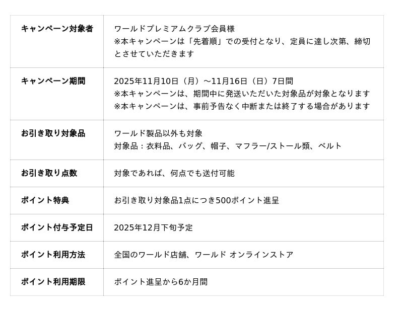 期間中、全国ワールド店舗・オンラインストアでのお買い物にご利用いただけます。