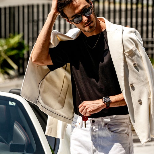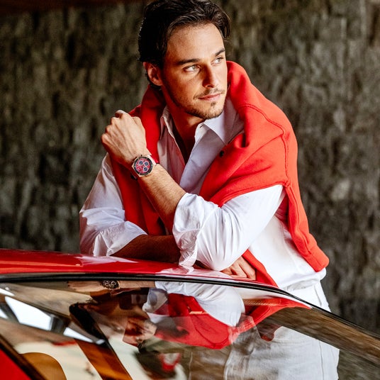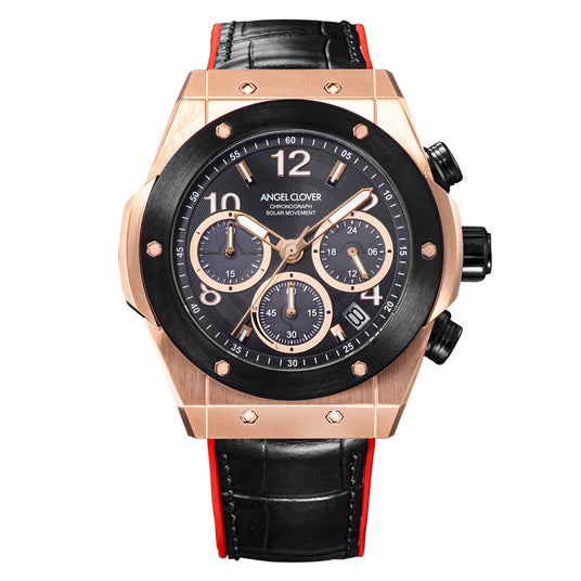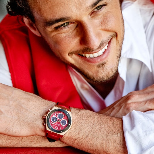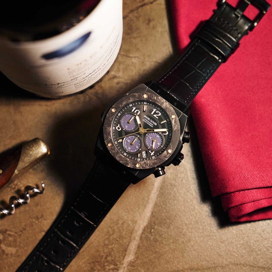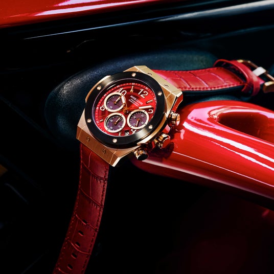 一方でブラックを基調にしたモデルは6本のビスが力強さを主張しつつ、ゴールドのケースが品格を後押し。色気を添えるレッド×ゴールド、上質感を与えるブラック×ゴールドと、どちらも手元から優雅で洒脱な雰囲気を纏わせてくれること請け合いです。