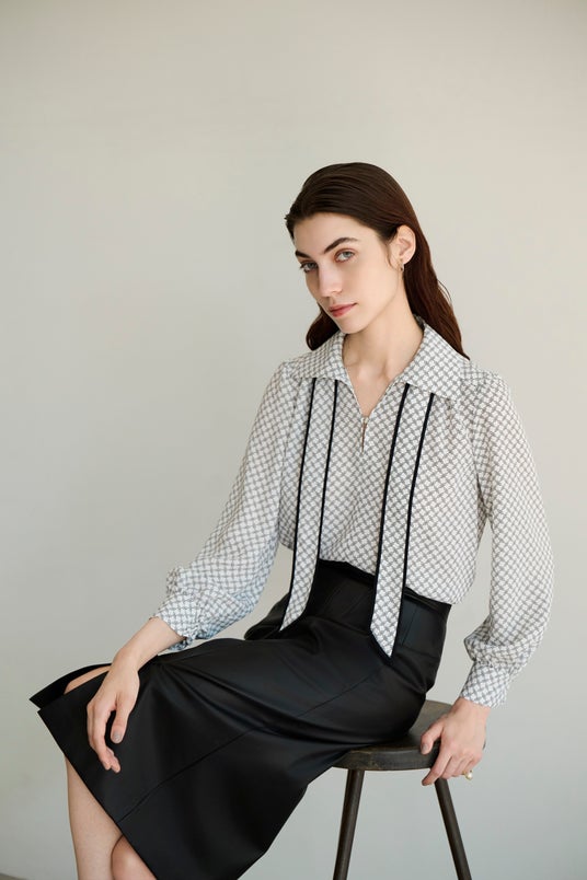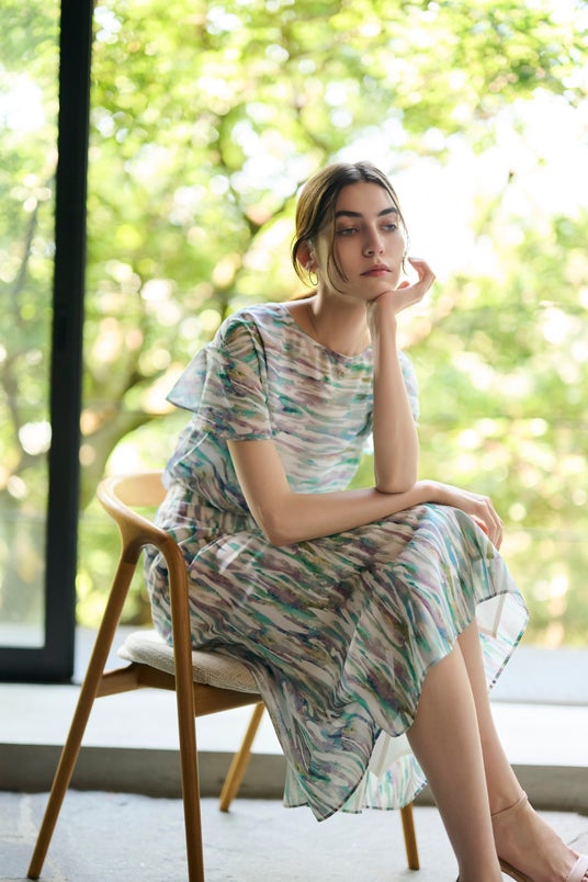 秋冬第一弾となるLOOK BOOKでは、水彩画の水面を思わせるプリントのセットアップ、デニムのように見えるブラウスやスカート、クードシャンスらしいプリントのブラウスなどが登場します。