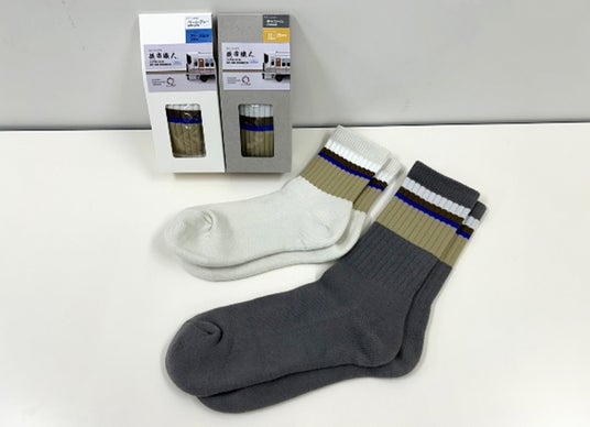 「TRANGIS←」製品の第1弾である「ステンレス製名刺入れ 鉄帯職人」に続き、より幅広い方に、カジュアルかつ身近に鉄道デザインを楽しんでいただける製品として、ラインソックスを製作させていただきました。
