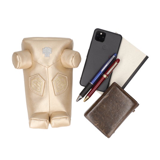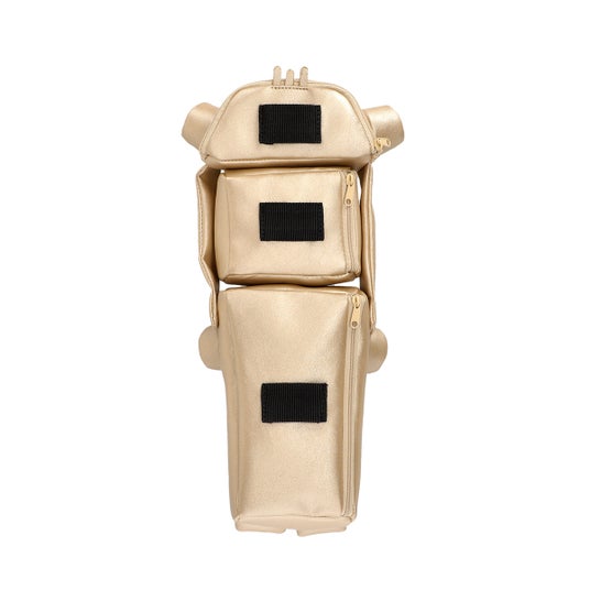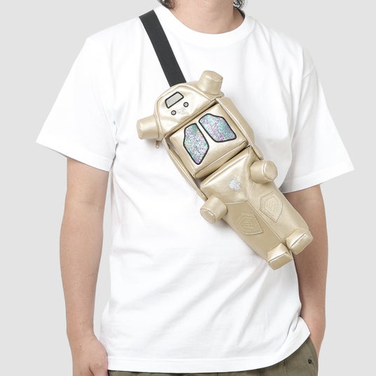 黄金に輝くボディが特徴的な本商品は、キングジョーが宇宙船に分離するように3つのポーチに分かれており、頭部にはイヤホンケースや常備薬、胸部にはティッシュやハンカチ、脚部は財布やスマートフォンが入る部位によって使い分けができるようサイズが異なります。内包した磁石で合体することで、収納ポケットを備えたボディバッグとして使用可能です。ショルダーバッグの接続部には策略星人 ペダン星人のシルエットをデザインし、『ウルトラセブン』の作中でキングジョーを操るシーンを想起させる仕掛けを施しました。