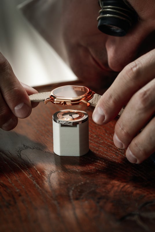ブランドの復活は、ロート氏のお気に入りの複雑機構であるトゥールビヨンからはじまりました。最初に限定エディションのイエローゴールド製「スースクリプション」シリーズが発売され、続いてローズゴールドエディションが登場。このコレクションは、ブランドのヘリテージに敬意を払う一方で、インハウス製のムーブメントDR001を採用。どのタイムピースも、手作業で綿密に作られ、卓越した手仕上げやソリッドゴールドのクル・ド・パリ ギョシェ模様ダイアルをあしらうことで、まさしく「芸術品としてのウォッチ(La Montre Objet d’Art)」となっています。