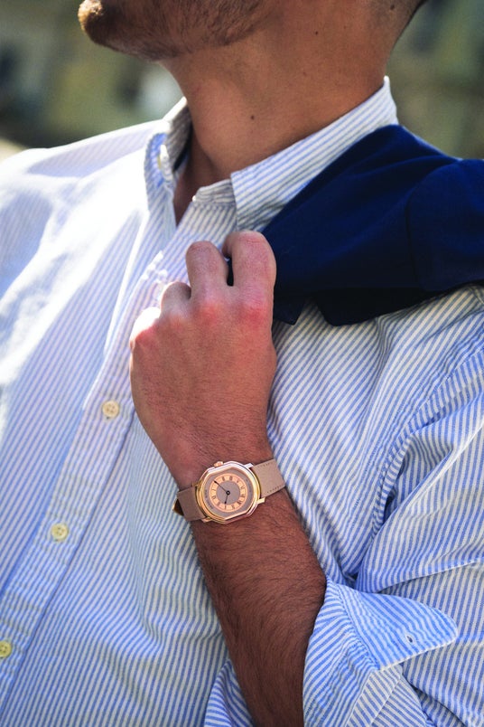 「ローズゴールドは華やかな輝きを持つ貴金属であり、クラシカルなウォッチメイキングに深く根差しつつ現代的な魅力も備えている」と、ダニエル・ロートのアーティスティック・ディレクター マチュー・エジは語ります。