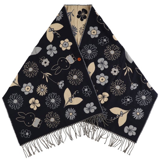 商品名 :Flower Miffy ストール Flower Bloom ネイビー&アイボリー/ピンク&ブラウン