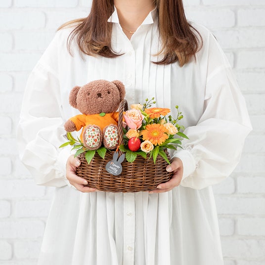 商品名 :フラワーミッフィー ほわほわぬいぐるみ ボリス生花アレンジ 「ボリスと秋の実り」