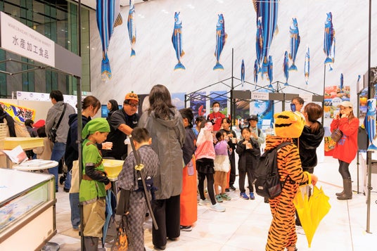 また、ワールド北青山ビルで毎年開催するハロウィンイベントも今年は「枕崎市プレミアムマーケット」仕様に。10月31日(金)の夕方から仮装をして会場を訪れた子どもたちに、枕崎市から「さつま揚げ」「いもけんぴ」などがプレゼントされ、青山エリアの皆さんとイベントを盛り上げました
