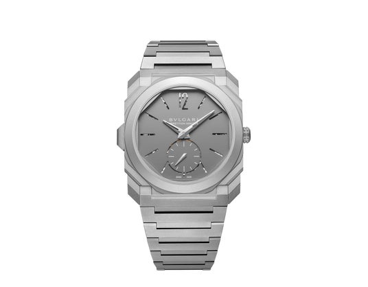新しい「オクト フィニッシモ」は、時代の精神を体現しています。これまで同様に大胆でモダンでありながら、ユニークでアイコニックな構造美とプロポーションを見直し、普遍的な存在感をさらに高めています。 またブルガリのマニュファクチュールが開発した新キャリバーが、魅力と性能をさらに強化することで、「オクト フィニッシモ」を今と未来を見据えたタイムピースとして確立させています。