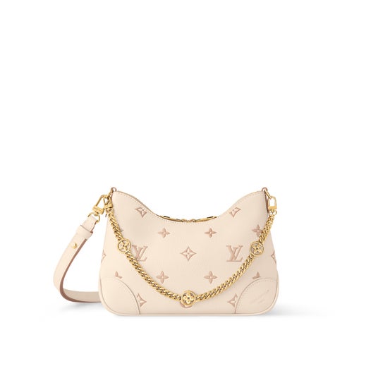 「ブーローニュ PM」は、さまざまな持ち方を楽しめる多用途なデザインで、内装には大きめのスマートフォンを収納できるフラットポケットを配しました。モノグラム・フラワーのチャームをあしらった、取外し可能のエレガントなゴールドカラーのチェーンが彩りをプラス。