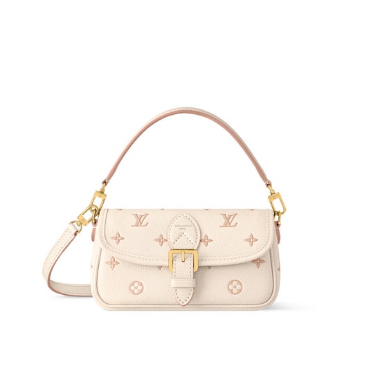 アイコニックなバッグ「ディアヌ」をミニチュアサイズに仕上げた「ナノ・ディアヌ」。レザーにゴールドカラーの金具でアクセントを添え、取外し可能なストラップとハンドルを配しました。カードケースや化粧品など毎日の必需品を収納するのにぴったりなコンパクトサイズ。
