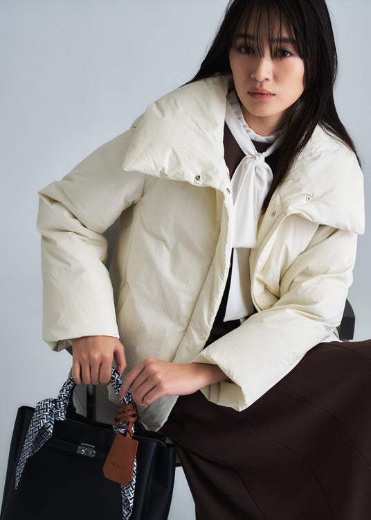 ・デザイン:トレンドのステッチレスによるふわっとしたボリュームとステンカラーのようなデザイン衿がポイント。撥水加工を施した機能性アイテムです。手洗い可。
