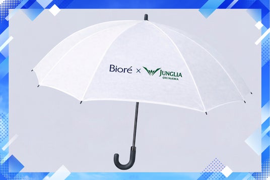 日傘には、ビオレとジャングリア沖縄のロゴをあしらっています。