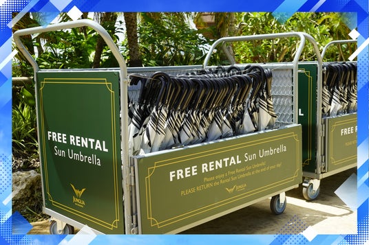 ゲストの熱中症・紫外線対策として有効な晴雨兼用の「日傘」(5000本)を順次導入。