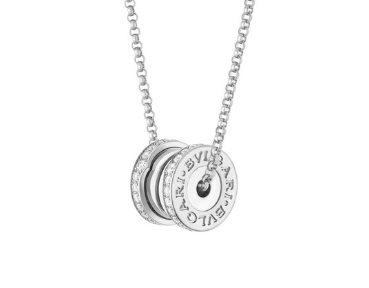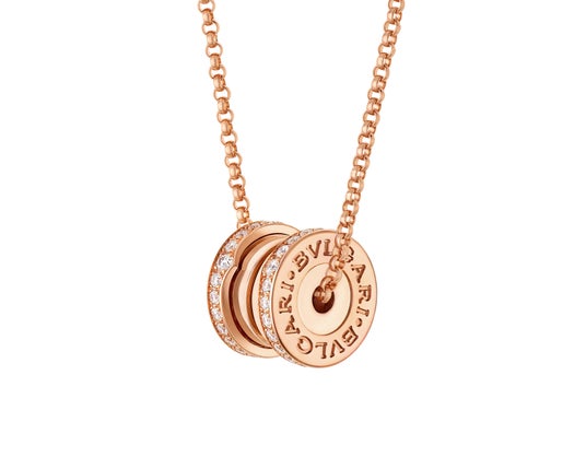 新作のネックレスは、ビー・ゼロワンの建築的な核となるデザインを、軽やかさと均衡の取れたプロポーションで再解釈しました。洗練されたチェーンから吊るされ、サイドにはダイヤモンドパヴェがさりげなくあしらわれることで、デザインに現代的な輝きを添えています。
