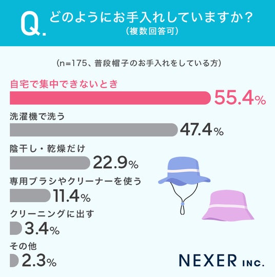 次に、帽子のお手入れはどのように行うのか、聞いてみました。