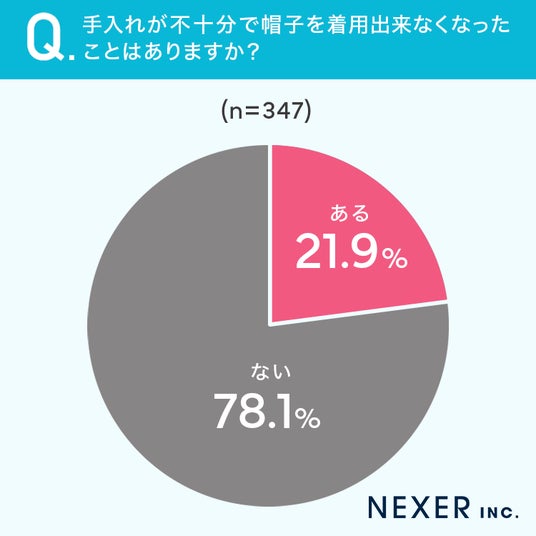 手入れが不十分なために帽子を着用できなくなった経験があると回答した方は21.9%でした。