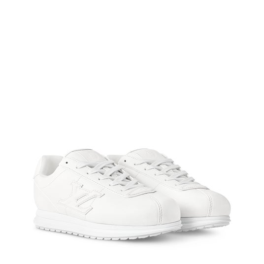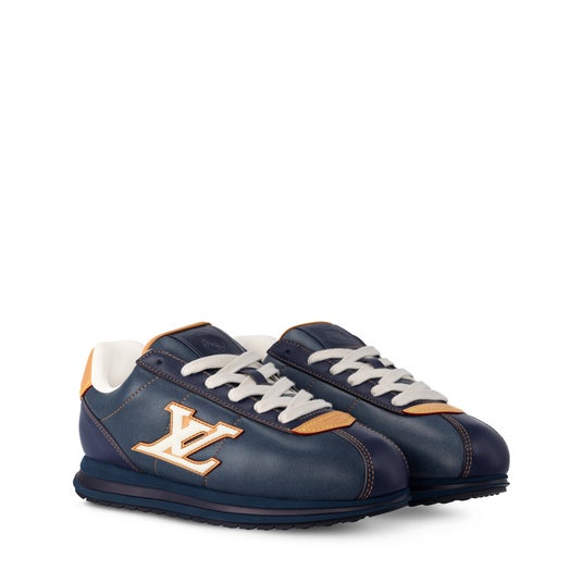 スニーカーが初めてファッションアイテムとなった1960年代から着想を得た1足で、ラムレザーとカーフレザーで精緻に仕上げ、しなやかなレザーとパッド入りのアッパーでこの上なく柔らかな履き心地を実現。LV イニシャルやルイ・ヴィトンのレザーグッズを想わせるディテール、2025秋冬メンズ・ファッションショーならではのエンボス加工で施したファレル・ウィリアムスの横顔とロブスターのモチーフなど、複数のシグネチャーがあしらわれた上品なスタイル。