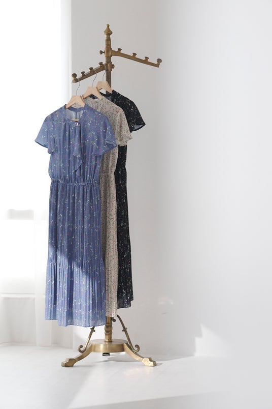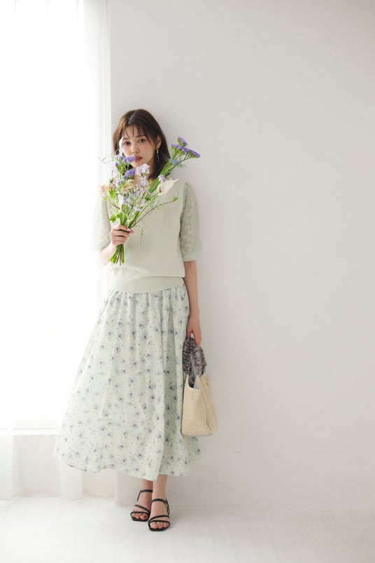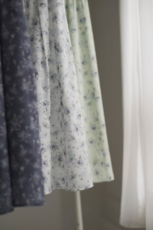 透け感のある軽やかな素材に咲く、線画の繊細な花々。