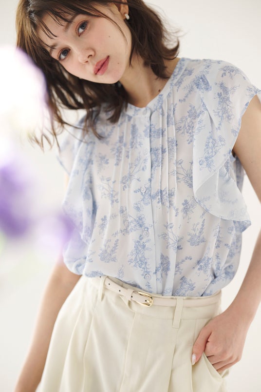 ペールカラーやピンタック使いで程よく甘い大人のブラウス。